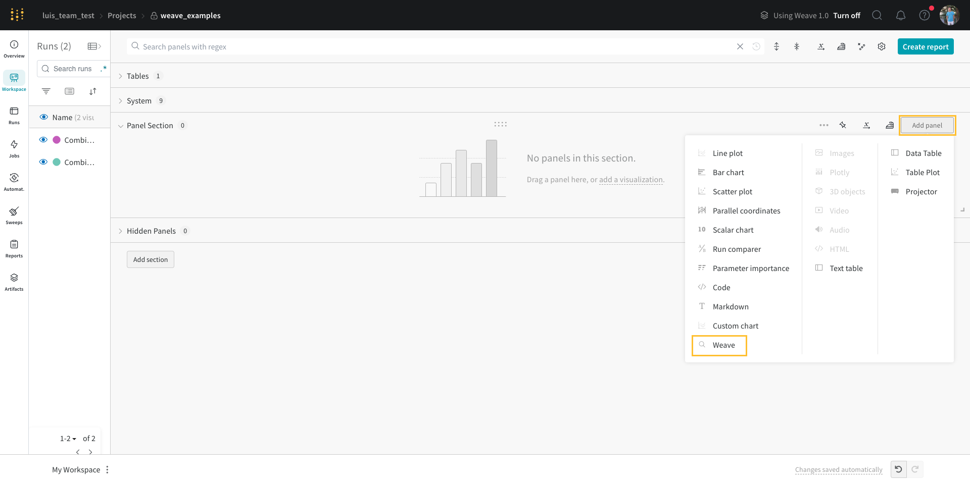 Use query panels to access the runs object. Run objects store records of your experiments. You can find more details about it in this section of the report but, as quick overview, runs object has available: